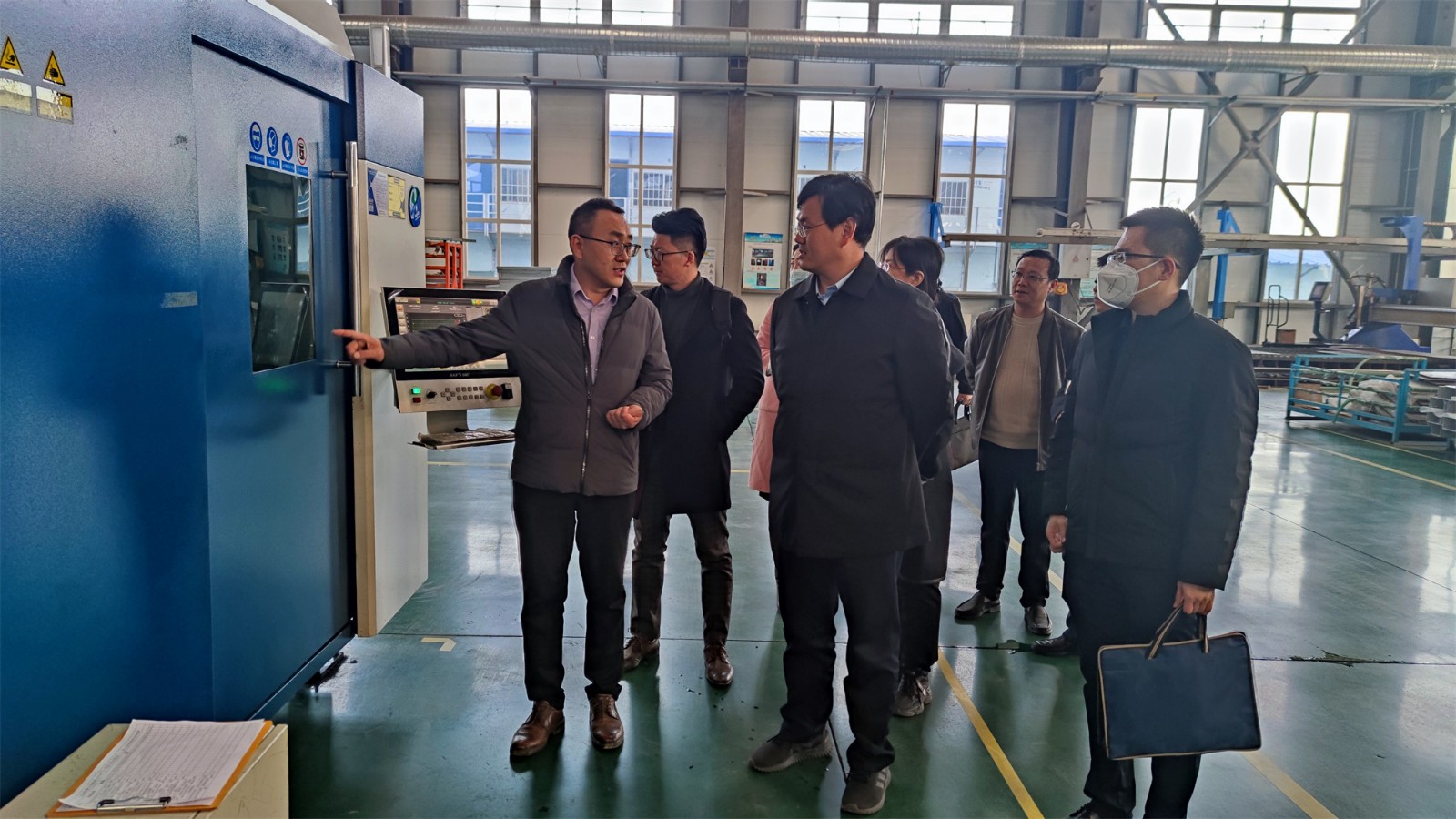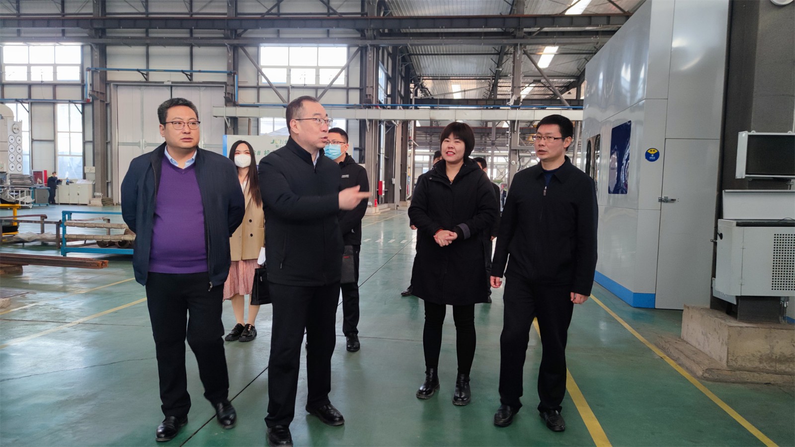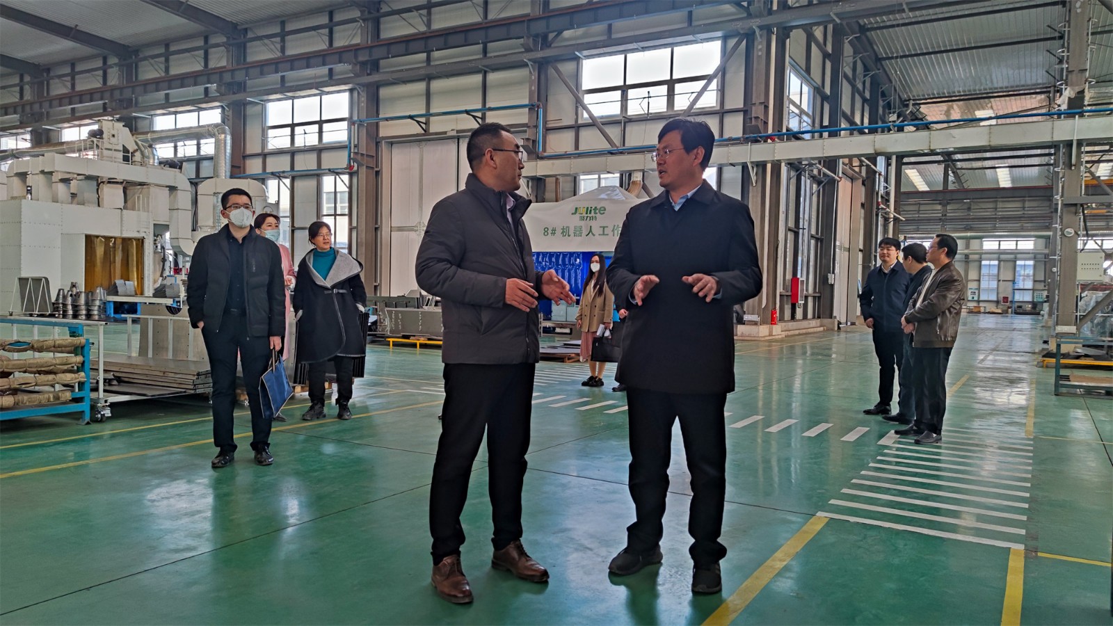 尹處長一行來到工廠廠房,參觀了生產(chǎn)現(xiàn)場,詳細(xì)詢問了項(xiàng)目投產(chǎn)情況。總經(jīng)理向尹處長匯報了聚力特工業(yè)設(shè)備智能制造產(chǎn)業(yè)化項(xiàng)目的建設(shè)進(jìn)程、生產(chǎn)能力和發(fā)展前景,各級政府疫情期間全力保障企業(yè)生產(chǎn)生活表示了衷心的感謝。