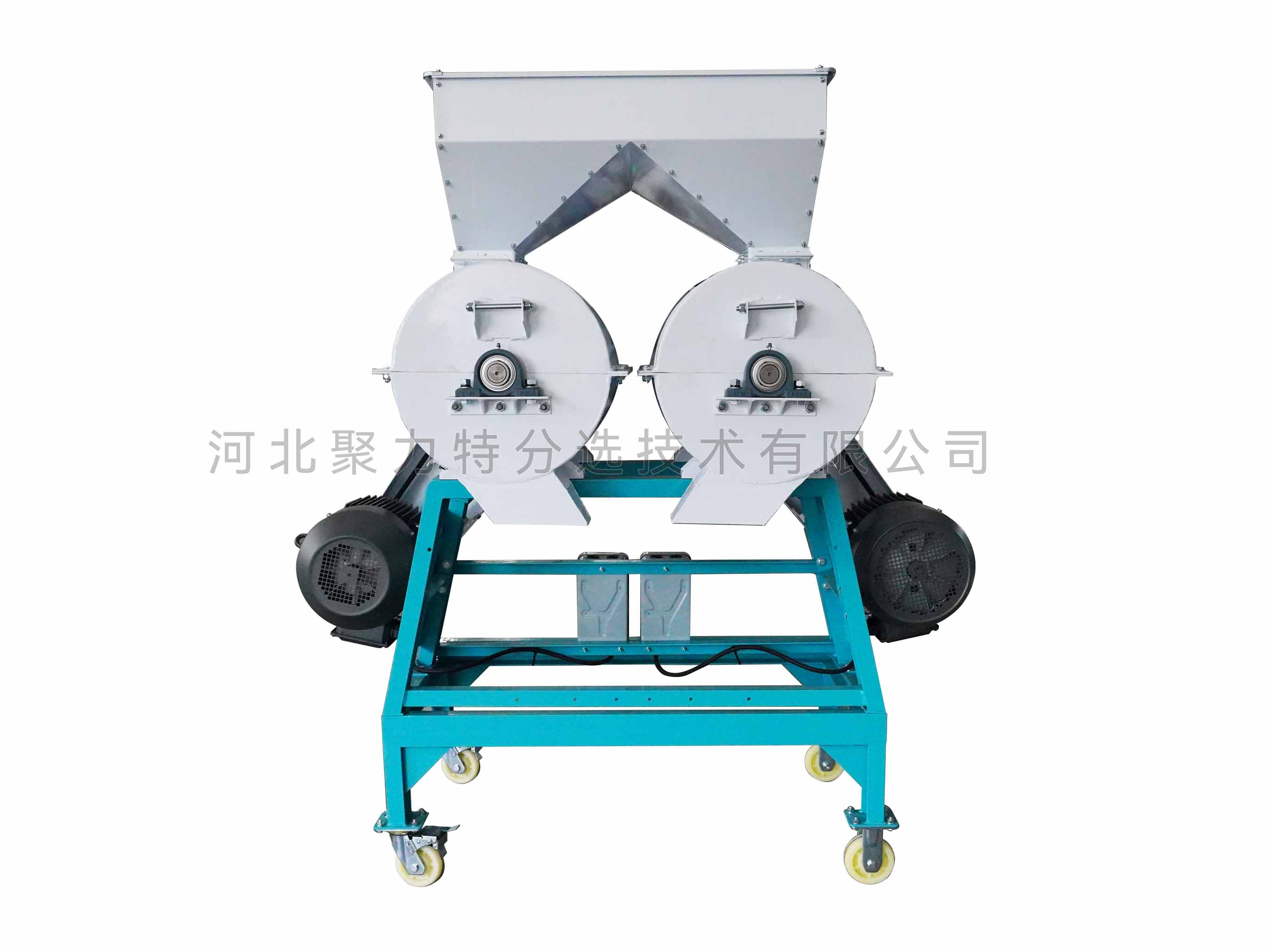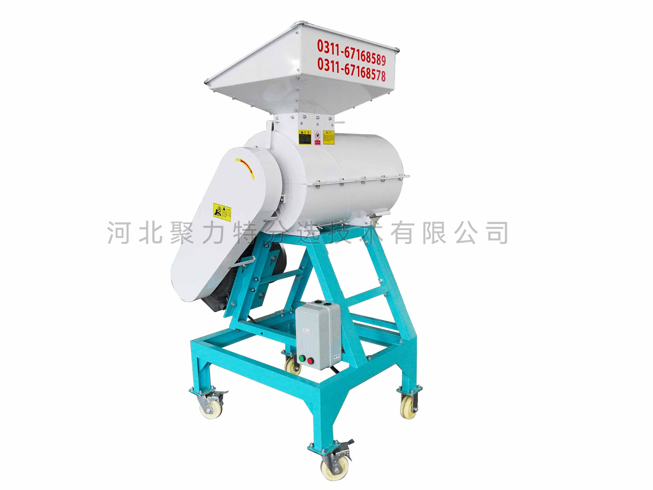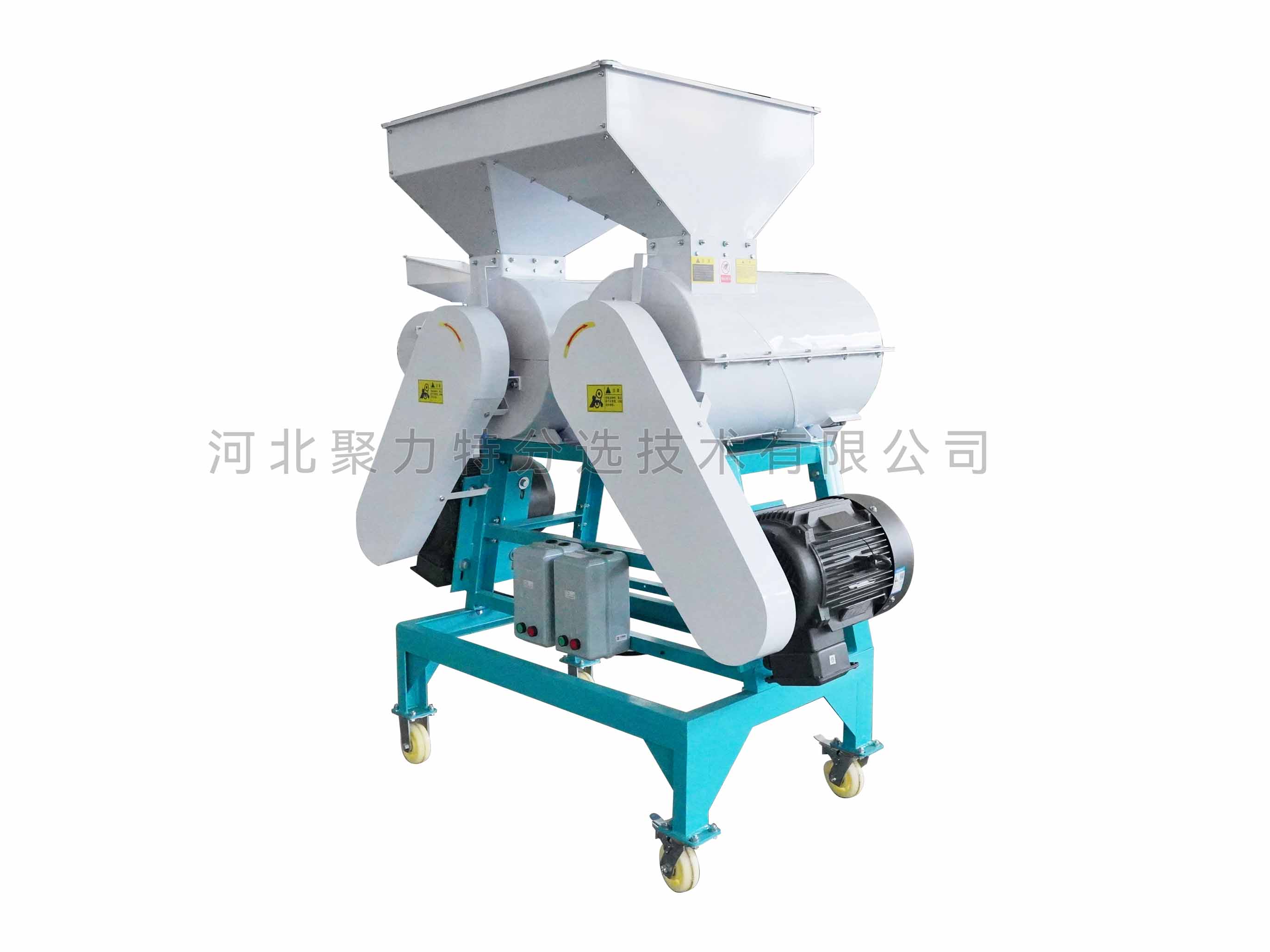 該機(jī)是以柔性碾搓為主,通過(guò)合理的轉(zhuǎn)速設(shè)計(jì)和調(diào)整機(jī)筒內(nèi)的物料存量從而控制物料之間的揉搓力,將附著在物料上的殼、芒、翼、毛、刺、尖等清除干凈。